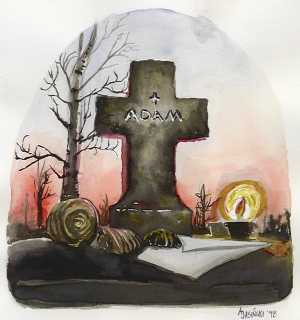 Podmiejski cmentarzyk. Tuż tuż od pięknego mieszkania z balkonem, które Adaś zdążył