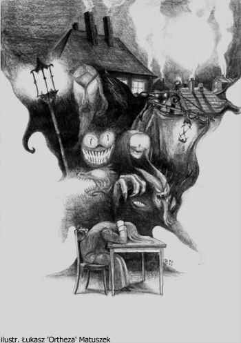 tylko piecem. Czerń siedząca w przeciwległym kącie była jedynie cieniem, a nie