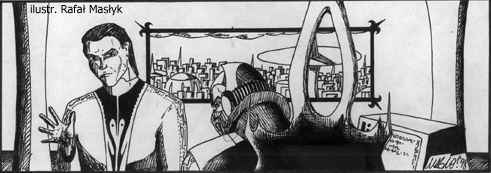 - Daj mi wzór oka. - Rzucił przez ramię, podając gościowi niewielkie pudełko. Ten umiał się sprawnie obchodzić z sensorem siatkówki, bo nie wahając się przyłożył go właściwą stronę do oka. Nie krył przy tym ironicznego uśmiechu. Na końcu języka miał uwagę o swoistym sposobie przyjmowania rozmówców, ale umiał się powstrzymać od jej wyartykułowania. Gość nauczył się dbać o własne życie. Po chwili napis pojawił się znowu. Treść była nie zmieniona.