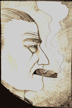 przygotowywał do zapalenia cygaro. Drugą osobą był młody człowiek z ostatnich