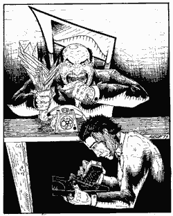 - Poza tym, dlaczego nie wstawiliście specjalnego paragrafu na stronie trzeciej. Zostawiliście pustą linijkę przerwy, nie wiadomo po co, a tam aż się prosi by jakiś błyskotliwy paragraf wstawić. Nie wiem, może coś o strukturalizacji wewnętrznej, może coś o hierarchizacji integracyjnej, wymyślcie coś. To tyle na dzisiaj. Aha, byłbym zapomniał, muszę was poinformować, że postanowiliśmy pana zdegradować od następnego miesiąca. Przyczyny tej decyzji są ściśle poufne, ale proszę mi wierzyć powody dla których to uczyliśmy były poważne. To tyle, nie przeszkadzajcie mi dłużej. Aha, i ćwiczcie w domu pastowanie, ćwiczcie bo mówię wam okres jest nadzwyczaj poważny i trzeba być tego świadomym.