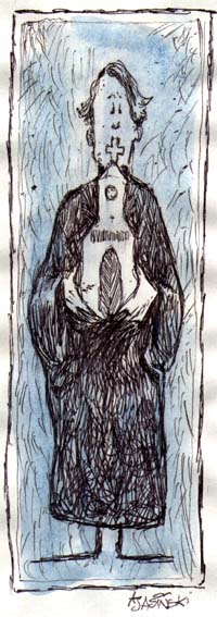 | | ilustracja: Aleksander Jasiński | W pewnym mieście stała Katedra. Niemała, ale nieduża. Taka w sam raz. Miała całe niezbędne wyposażenie - gargulce, katakumby, posągi, pajęczyny... No i oczywiście Starego Księdza, który zupełnie sam zajmował się Katedrą. Tak jak to zwykle bywa.