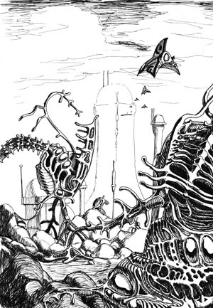 "Jak wyglądają istoty rozumne z innych światów? Nie odpowiem wprost, sam się zastanów, naucz się myśleć. Najpierw muszą mieć organy do przyswajania amoniaku, nieprawdaż? Jaki narząd to uczyni lepiej od skrzypion? Czy nie muszą się poruszać w środowisku w miarę opornym, w miarę ciepłym jak nasze? Muszą, co? A widzisz! Jakże to czynić inaczej niż obojniami? Podobnie też będą się kształtować narządy zmysłowe - wzrocza, łuspiny i kutrwie. (...) Tak więc jak widzisz, jeśli rozumować bez najmniejszych uprzedzeń, opierając się o narzędzia logiki, działając chłodno i obiektywnie, dochodzimy do nieodpartego wniosku, że każda istota rozumna musi być podobna do pięciorniaka... Tak. Mam nadzieję, że was przekonałem?"